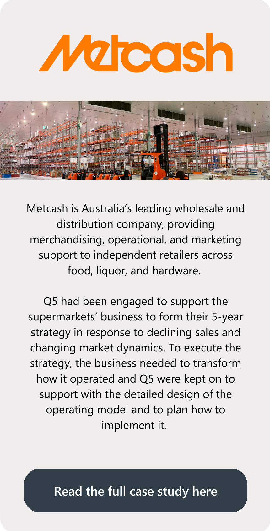 The article provides a versatile approach to organisational design that effectively balances multiple strategic priorities, such as growth, cost, and agility. It offers concrete advice for reconciling conflicting business priorities within an operating model redesign. Drawing on Q5’s proven methodologies and tools, a practical blueprint is also given for establishing a solid base for organisational redesign.